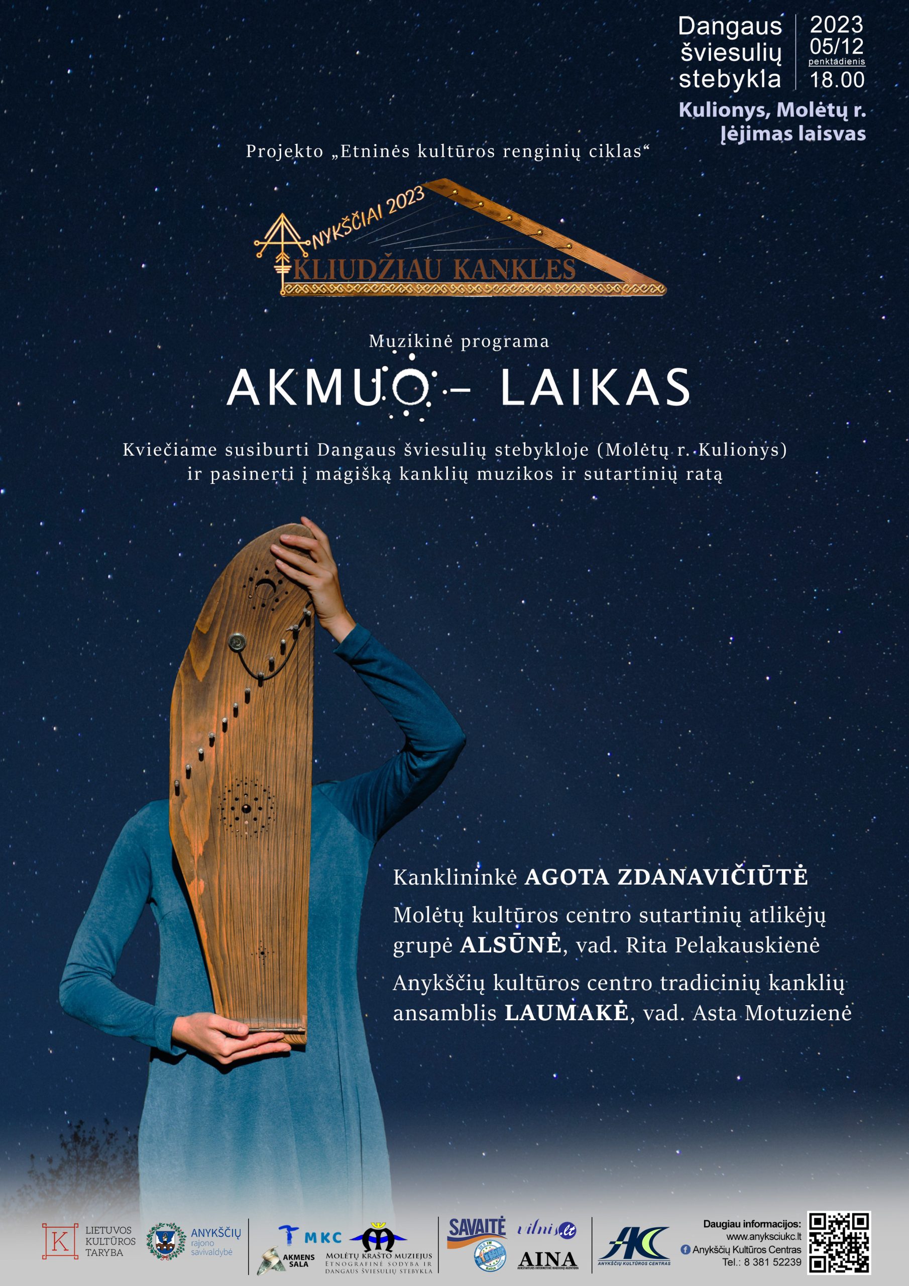 Gegužės 12 d. muzikinė programa „Akmuo – laikas“ suskambo Dangaus šviesulių stebykloje (Kulionys, Molėtų r.). Kanklininkė Agota Zdanavičiūtė, Molėtų kultūros centro sutartinių atlikėjų grupė „Alsūnė“ (vad. Rita Pelakauskienė) ir Anykščių kultūros centro tradicinių kanklių ansamblis „Laumakė“ (vad. Asta Motuzienė) kvietė pasinerti į magišką kanklių muzikos ir sutartinių ratą.