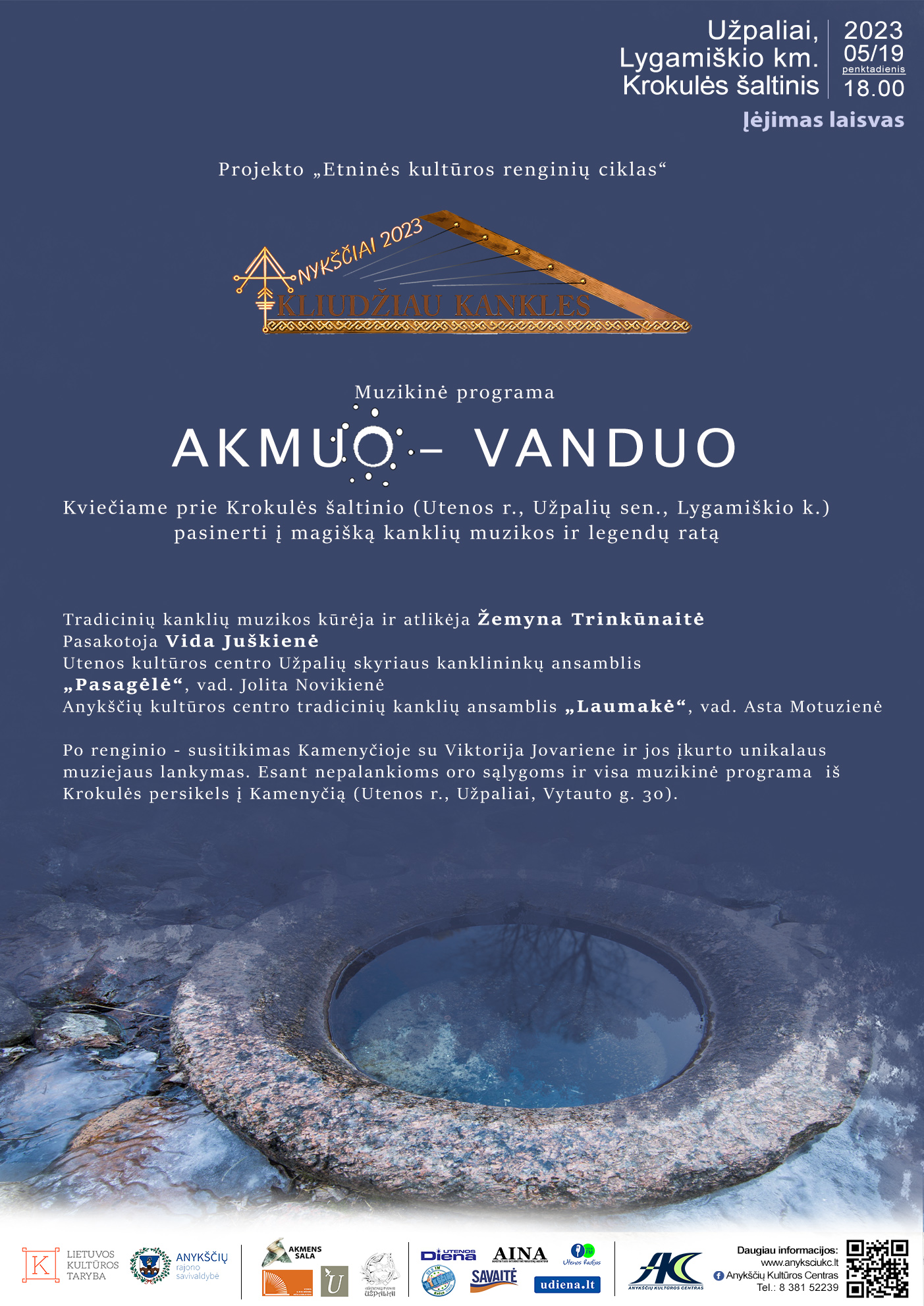 Gegužės 19 d. prie stebuklingo Krokulės šaltinio (Užpaliai, Utenos r.) muzikinėje programoje „Akmuo – vanduo“ skambėjo kanklių melodijos ir legendos, kurias kūrė tradicinių kanklių muzikos kūrėja ir atlikėja Žemyna Trinkūnaitė, kanklininkė Dalia Šukienė, pasakotoja Vida Juškienė, Utenos kultūros centro Užpalių skyriaus kanklininkų ansamblis „Pasagėlė“ (vad. Jolita Novikienė) ir Anykščių kultūros centro tradicinių kanklių ansamblis „Laumakė“ (vad. Asta Motuzienė).