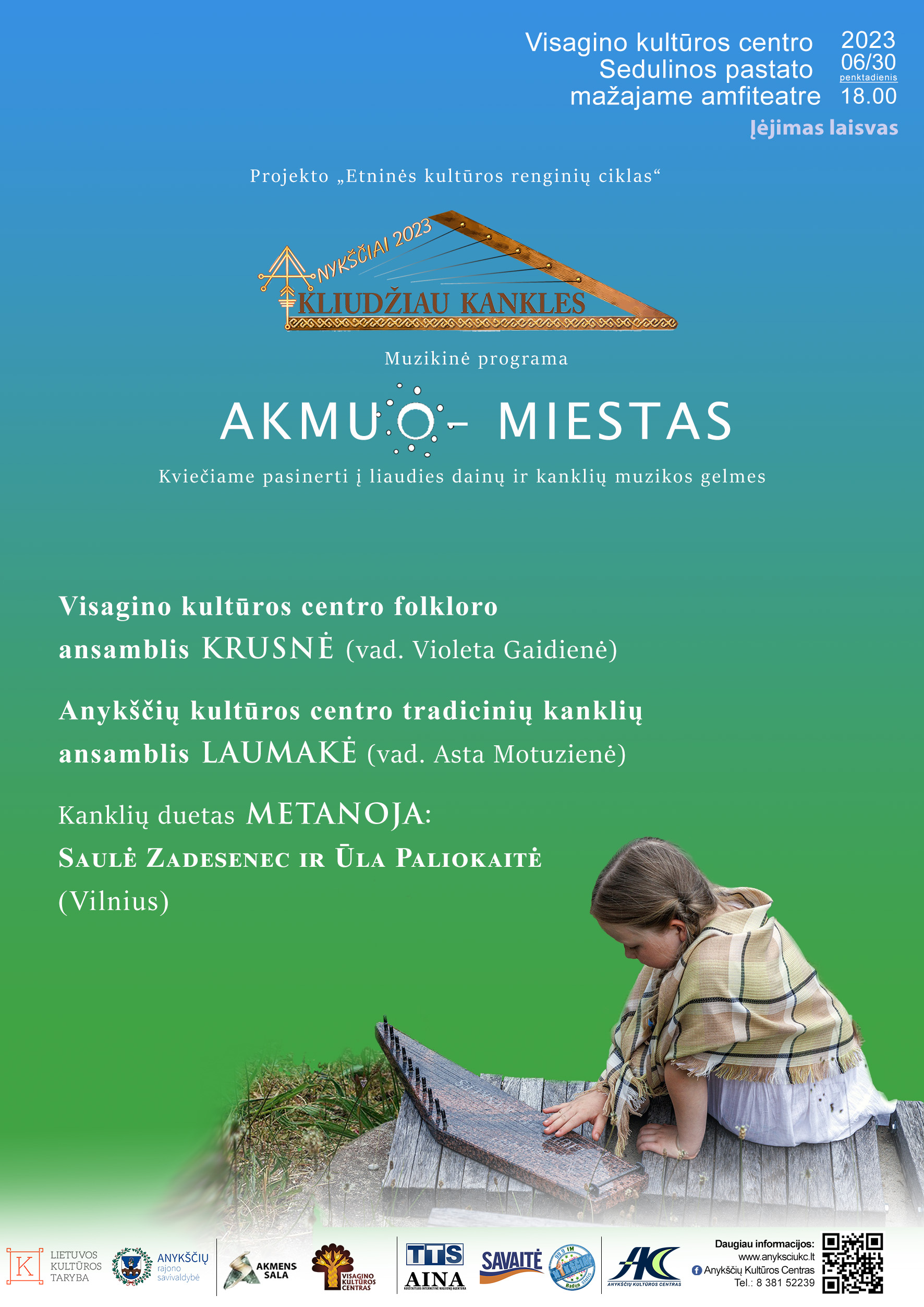 Birželio 30 d. Visagino kultūros centro Sedulinos pastato mažajame amfiteatre muzikinėje programoje „Akmuo – miestas“ Visagino kultūros centro folkloro ansamblis „Krusnė“ (vad. Violeta Gaidienė) ir Anykščių kultūros centro tradicinių kanklių ansamblis „Laumakė“ (vad. Asta Motuzienė) klausytojus kvietė pasinerti į liaudies dainų ir kanklių muzikos gelmes. Šio renginio programą vainikavo žavingas kanklininkių iš Vilniaus Saulės Zadesenec ir Ūlos Paliokaitės duetas „Metanoja“.