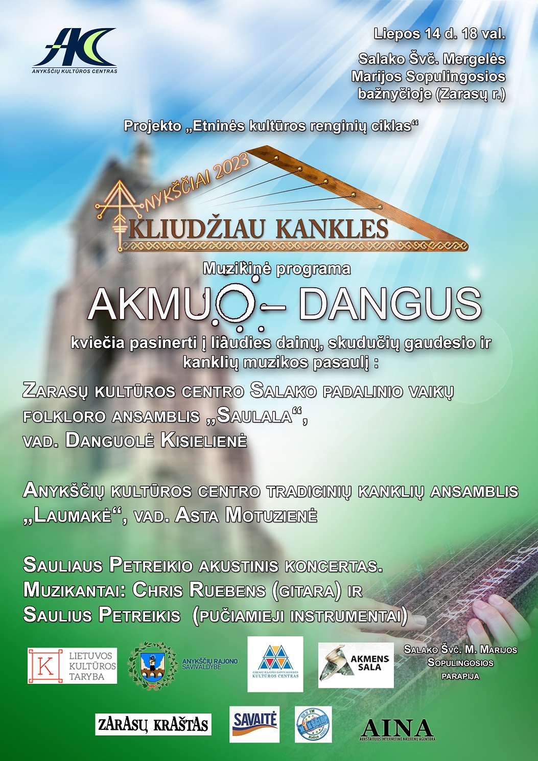 Liepos 14 d. Salako Švč. Mergelės Marijos Sopulingosios bažnyčioje muzikinėje programoje „Akmuo – dangus“ Zarasų kultūros centro Salako padalinio vaikų folkloro ansamblis „Saulala“ (vad. Danguolė Kisielienė) ir Anykščių kultūros centro tradicinių kanklių ansamblis „Laumakė“ (vad. Asta Motuzienė) klausytojus kvietė pasinerti į liaudies dainų, skudučių gaudesio ir kanklių muzikos pasaulį, nerealius įspūdžius dovanojo muzikantų Sauliaus Petreikio (pučiamieji instrumentai) ir Chris Ruebens (gitara) atliekama muzika.